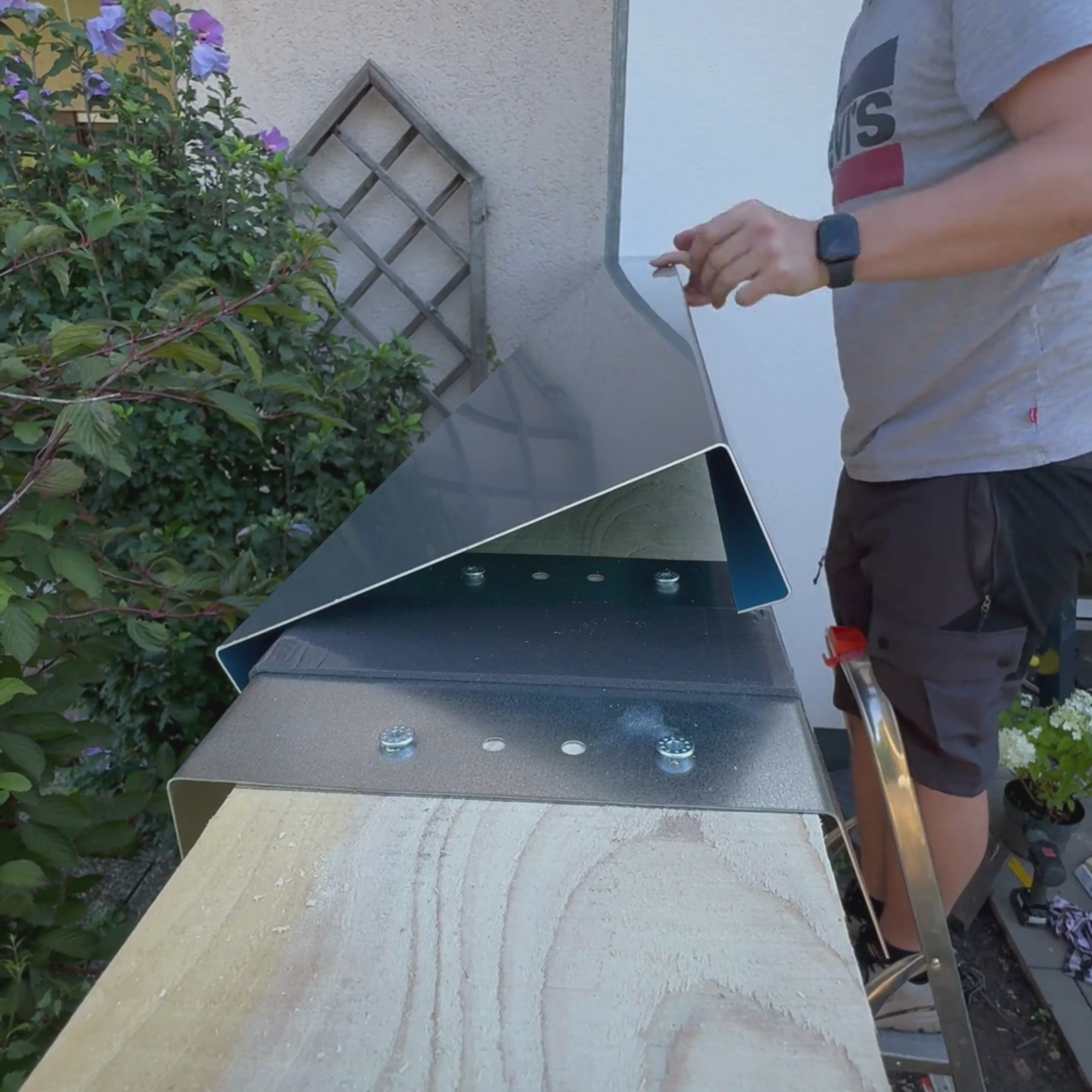 Die Materialstärke von 1,0 mm der Abdeckung erfüllt die Mindestwerkstoffdicke für selbsttragende Metallteile und Mauerabdeckungen laut der Klempnerfachregel und sorgt für genügend Stabilität.